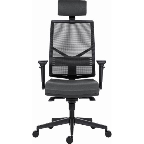 Ergonomický design, který umožňuje správnou polohu těla a minimalizuje zatížení páteře, předloktí a krční páteře Polstrované sedadlo a a opěradlo ze síťoviny Synchronní mechanismus umožňuje synchronizaci pohybu sedáku a opěráku, takže se obě části pohybují současně v poměru 2:1 - to znamená, že když se sedák posune o jeden centimetr dopředu, opěrák se posune o dva centimetry dozadu