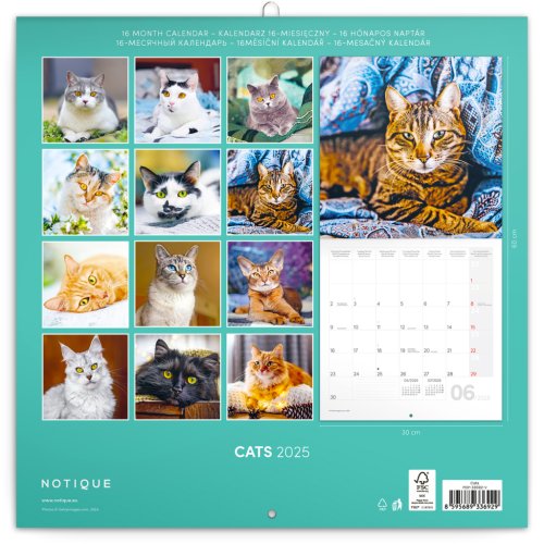 Poznámkový kalendář pro milovníky chlupatých kočičích přátel a jejich komplikovaných osobností. Šestijazyčné kalendárium nabízí dost prostoru pro vaše poznámky a plány, dále obsahuje fáze měsíce a důležité svátky.