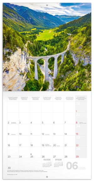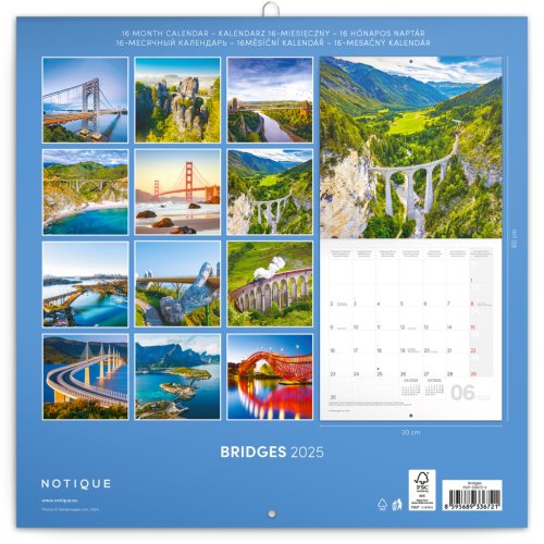 Nejslavnější a nejnápaditější mosty z celého světa. V kalendáři kromě fotek najdete přehledné kalendárium od září 2024 do prosince 2025 v šesti jazycích, fáze měsíce, důležité svátky a prostor pro poznámky na každý den.
