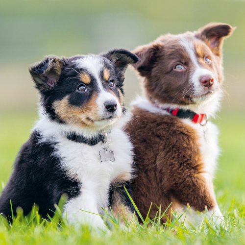 Roztomilá štěňátka na fotografiích v poznámkovém kalendáři.