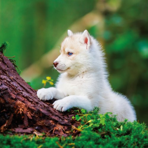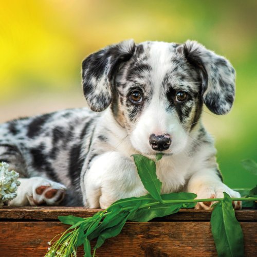 Roztomilá štěňátka na fotografiích v poznámkovém kalendáři. Uvnitř najdete přehledné kalendárium od září 2025 do prosince 2026 v šesti jazycích, měsíční fáze, důležité svátky a prostor pro poznámky na každý den.