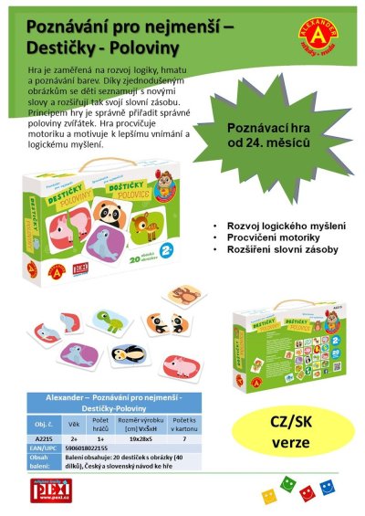 Garantem poznávacích her je uznávaná psycholožka z varšavské univerzity Alexandra Petrovská. Hra je vhodná pro děti od 2 do 3 let.