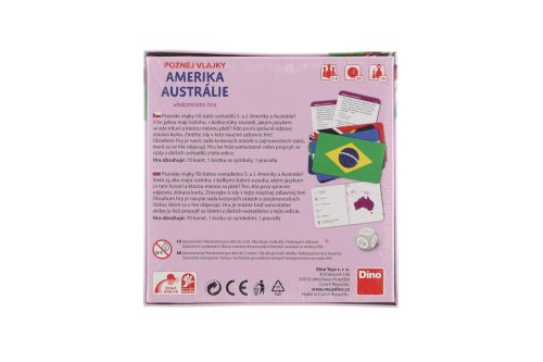 Poznávejte a procvičujte si vlajky států na kontinentech Ameriky a Austrálie. Určíte, které zemi patří vlajka, jaké má hlavní město, úřední jazyk, měnu, sousední státy nebo rozlohu? Hra obsahuje i sadu kvízových otázek o státech, které se ve hře vyskytují.Vědomostní karetní hra, která procvičí znalosti vlajek a základních informací o státech Ameriky a Austrálie.Věk: 10+Počet hráčů: 2-6