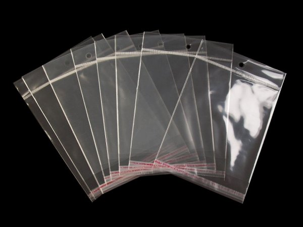 Lesklé sáčky o velikosti 13 x 14 cm jsou vhodné především pro náhrdelníky, náramky nebo kompletní sady. Z jedné strany jsou sáčky opatřeny lepicí lištou, díky které je snadno zalepíte i rozlepíte, a z druhé strany závěsem, abyste je mohli snadno zavěsit na viditelné místo.