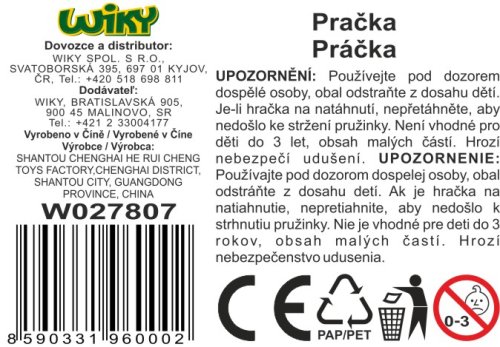 Tato natahovací hračka ve tvaru pračky je dokonalým doplňkem pro malé milovníky domácího hospodářství. Skvěle se hodí do dětských herních koutků a poskytuje zábavu na mnoho hodin.
