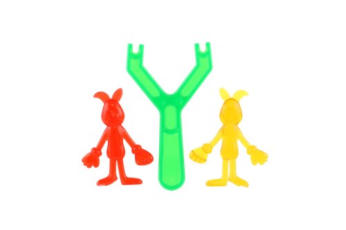 Originální hračka, se kterou zažijete jistě spoustu zábavy! Balení obsahuje plastový prak a dva veselé zajíčky z měkkého materiálu, které lze pomocí praku vystřelovat. Rozměr balení: 19 x 23,5 cm Vhodné pro děti od 3 let