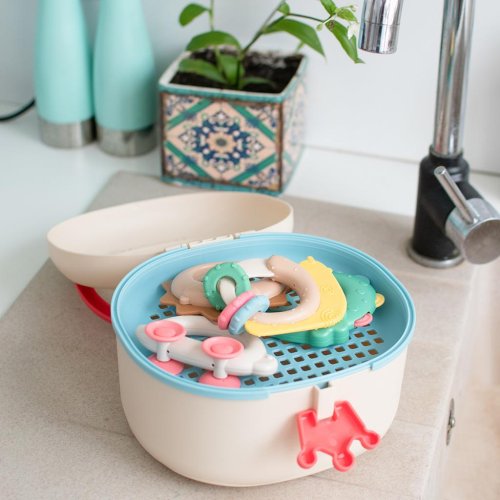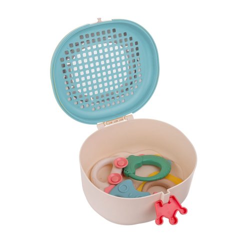Ideální pro uložení chrastítek, kousátek a drobného příslušenství. Speciální praktický klip ve tvaru korunky zaručuje těsné uzavření.