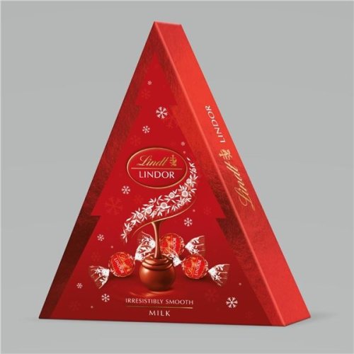 Dárková krabička ve tvaru stromečku s jemnými pralinkami z mléčné čokolády Rozměr: výška 21 x dolní šířka 18 cm Hmotnost: 125 g