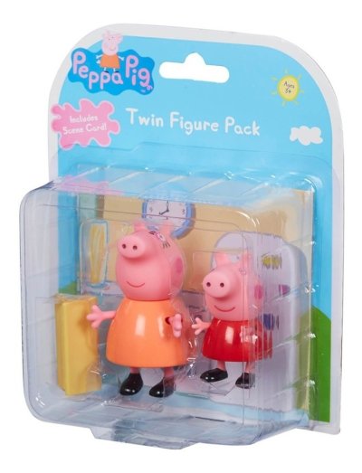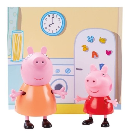 Prasátko Peppa – dvě tématické figurky s pozadím dětský pokoj, kuchyně, obývací pokoj. Velikost figurek – 8 cm a 5 cm.