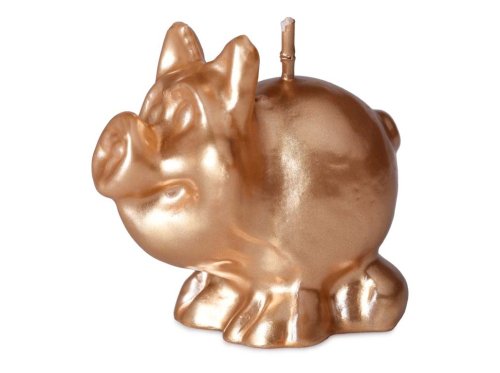Prasátko pro štěstí 75x105 Metal zlatá svíčka
