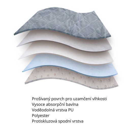 Praktická a ekologická alternativa jednorázových podložek. Díky 5vrstvé konstrukci rychle vstřebává tekutiny, nepropouští a zároveň chrání podlahy i nábytek před nečistotami.