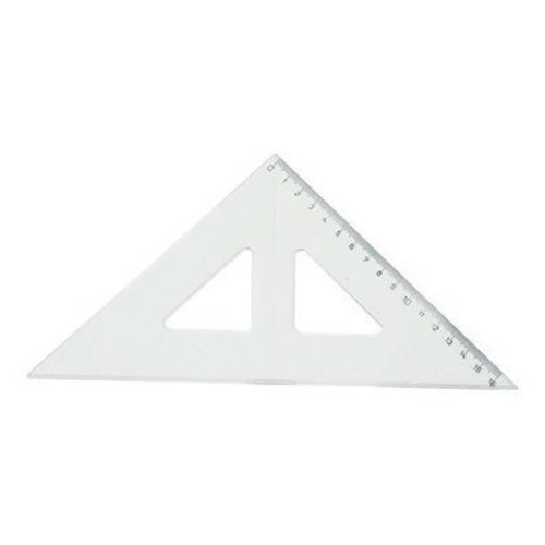 Průhledné trojúhelníkové pravítko s ryskou vhodné do hodin matematiky a geometrie. Délka 16 x 16 x 25 cm.
