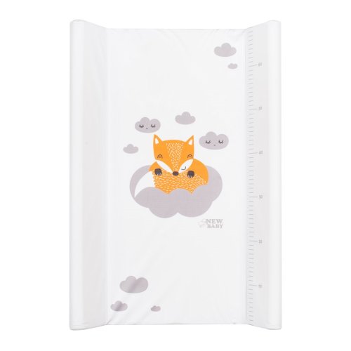 Praktický tvarovaný přebalovací nástavec s moderním dizajnem New Baby Liška z nepromokavého, plastového materiálu s obrázkem lišky a obláčků. Produkt české značky. Nástavec je vyplněn polyesterem a má vyvýšené boční strany. Nástavec má spodní tvrdou desku, lze ho přišroubovat na postýlku nebo umístit na přebalovací stojan. Je vyroben z nejkvalitnější certifikované fólie, která neobsahuje žádné škodlivé látky a je citlivá k nejjemnější dětské pokožce. Rozměr: cca 50x70 cm, tloušťka cca 2,5 cm, výška hran 8,5 cm.