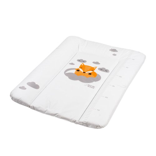 Praktická tvarovaná přebalovací podložka s moderním dizajnem New Baby Liška z nepromokavého, plastového materiálu s obrázkem lišky a obláčků. Produkt české značky. Podložka má vyvýšené boční strany a lze jí použít na komodě či jiném místě k přebalování. Rozměr: cca 70x50 cm, tloušťka cca 4 cm.