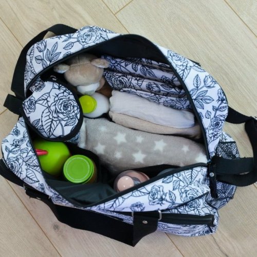 • funkční taška s mnoha přihrádkami a praktickými doplňky pro rodiče na cestách