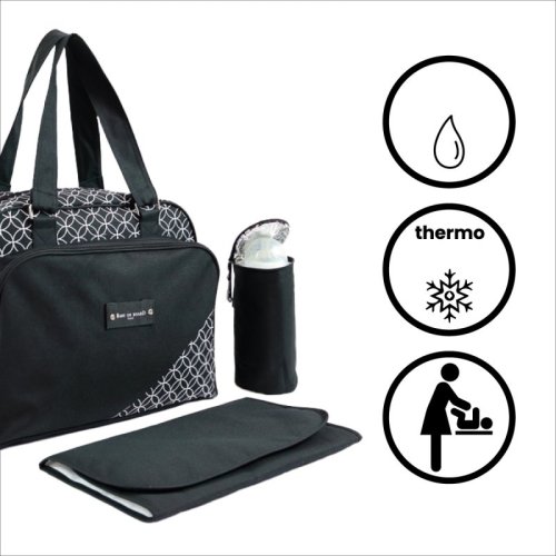 • funkční taška s mnoha přihrádkami a praktickými doplňky pro rodiče na cestách