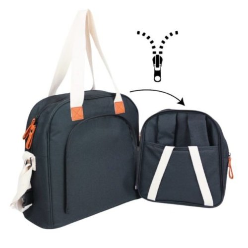• funkční taška 2v1 s mnoha přihrádkami a praktickými doplňky pro rodiče na cestách