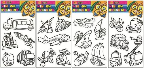 Předlohy na malování na sklo s vyvýšenou konturou - dopravní prostředky 30 x 21 cm