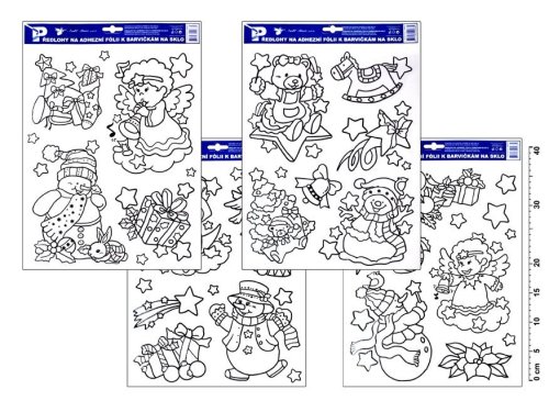 Předlohy na malování na sklo s vyvýšenou konturouADHÉZNÍ FÓLIE ELEKTROSTATICKY PŘILNE K POVRCHU!Vybarvěte a po uschnutí umístěte na čisté, případně navlhčené sklo, zrcadlo, apod...Můžete vybarvit: barvičkami na sklo, fixami, vodovými barvam,i apod.