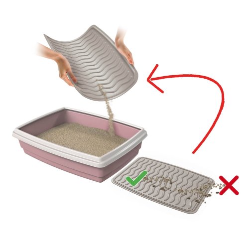 Praktická předložka před kočičí WC. Očistí tlapky kočky od podestýlky, okolí toalety tak zůstává čisté. Je doporučeno ji používat rovněž u citlivých koček.