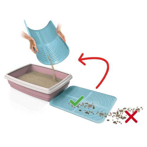 Praktická předložka před kočičí WC. Očistí tlapky kočky od podestýlky, okolí toalety tak zůstává čisté. Je doporučeno ji používat rovněž u citlivých koček.