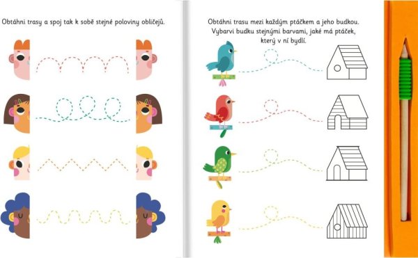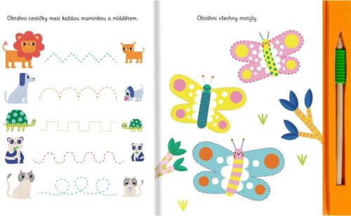 Tato kniha obsahuje úkoly k obtahování, labyrinty, spojování, kreslení a hledání dvojic. Všechny tyto aktivity jsou navrženy tak, aby děti bavily a zaujaly a přitom je zároveň podporovaly v procvičování práce s tužkou. K tomu slouží tužka s pěnovou protiskluzovou rukojetí pro snadný úchop, která je součástí knihy. Různorodé předškolní aktivity rozvíjejí u dítěte jemnou motoriku, koordinaci oka a ruky a počáteční schopnosti psaní, stejně tak jako schopnosti soustředění a vlastní kreativitu.