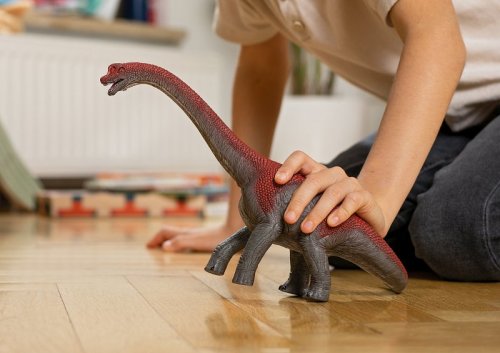 Obrovský Brachiosaurus je vidět už zdaleka: Jeho dlouhý krk, vysoký jako dům, vyčnívá nad korunami stromů. Co tam vlastně dělá? Ostrými zuby trhá z větví listy a větvičky. Při jídle ho jen málokdy něco ruší, a to nejen díky jeho velikosti. Prehistorický obr je od hlavy až po špičku ocasu pokrytý ohnivě červenou ještěří kůží. Brachiosaurus se tak chytře brání útočníkům. Jako vegetarián však obvykle nemá náladu na boj. Rozměry figurky: 17,6 x 29 x 12 cm. Věk: 4+