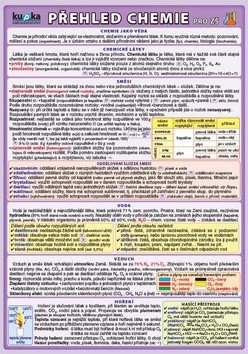 Přehledně zpracované učivo základní školy - od základních pojmů až po organickou a anorganickou chemii. Přehled mimo jiné obsahuje tabulku periodické soustavy prvků, 11 vzorových chemických výpočtů, 12 nákresů a tabulek, 57 chemických rovnic.