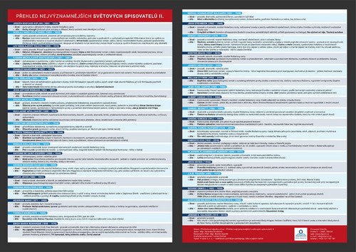 Přehledně zpracovaný přehled učiva pro pedagogy podle potřeb žáků.Přehledová tabulka učiva – Přehled světových spisovatelů II. - zpracovaný do přehledného souhrnu. Celkem 37 autorů, jejich život a nejvýznamnější díla pro snadné zapamatování.Tabulka je dobrým pomocníkem do hodiny literatury na druhém stupni základní školy. Přehledová tabulka slouží pro žáky prvního a druhého stupně. Přehledová tabulka je pomocníkem pro žáky se speciálními vzdělávacími potřebamiPřehledová tabulka je vhodná pro žáky připravující se na víceletá gymnázia