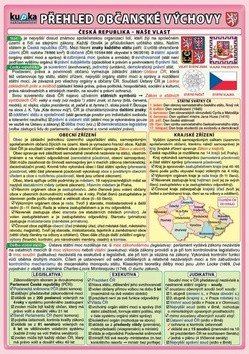 Přehledně zpracované učivo základní školy (dělba státní moci, druhy států, nadnárodní společenství, právo, život ve společnosti, etika, ekonomie).
