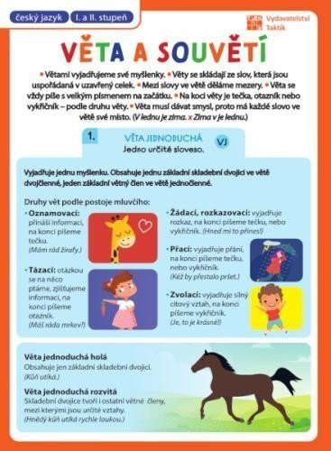 Přehled (tahák) DRUHŮ VĚT A SOUVĚTÍ pro 1. a 2. stupeň základní školy v jedné tabulce, která se vejde do každého sešitu či notýsku. Tento bohatě ilustrovaný a přehledný malý pomocník se hodí všem, bez ohledu na to, jestli je to školák, nebo ne.