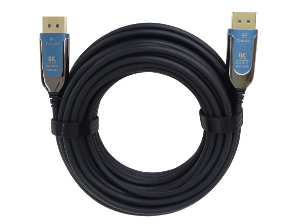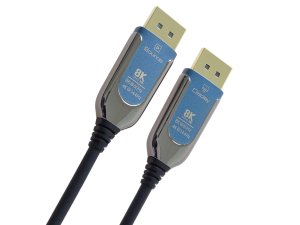 PremiumCord 8K optický DisplayPort 1.4 přípojný kabel M/M, zlacené konektory 15 m Optický AOC kabel se vyznačuje vynikajícím přenosem signálu na velké vzdálenosti beze ztrát, je odolný proti elektromagnetickému rušení a dává nejlepší možný obraz ve srovnání s metalickými kabely. Optický DisplayPort kabel slouží pro spojení dvou audio/video zařízení přes moderní DisplayPort rozhraní, jako je např. HD-DVD/BluRay přehrávač a LCD/Plazma televizor. kabel přenáší digitální zvuk i obraz . Díky technologii AOC a optickému vláknu se kabely vyrábějí v délkách 10m, 15m, 20m, 25m, 30m a 50m. Tenká a lehká konstrukce kabelu jej předurčuje pro všechny druhy instalací.