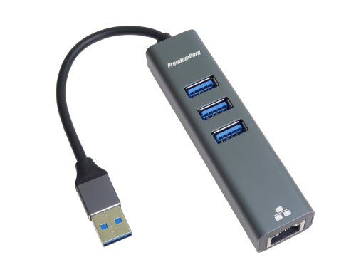 PremiumCord adaptér USB3.0 -> LAN RJ45 ETHERNET 10/100/1000 MBIT + 3x USB3.0 port Převodník, který umožní připojit Váš počítač s portem USB3.0 typu A do internetu nebo k lokální síti pomocí kabelu s RJ45 a navíc umožňuje zapojit tři USB3.0 periferie jako USB disk, tiskárnu, klávesnici a myš Adaptér je vhodný pro počítače, zpravidla notebooky, které nedisponují ethernetovým portem RJ45, či pokud se Vám rozbije port na základní desce, jako jeho snadná náhrada.