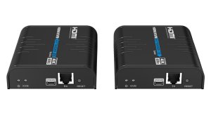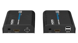 Zařízení umožňuje po jednom síťovém kabelu nebo přes ethernet síť přenést HDMI 4K@60Hz nebo FULL HD 1080p signál a připojit USB periferie, klávesnici,myš nebo dotykovou obrazovku až na vzdálenost 120m nebo 200m při přímém propojení.