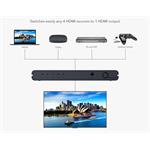 PremiumCord HDMI switch 4:1 s podporou rozlišení 4Kx2K@60Hz, 1080P, HDR, s ovládáním tlačítkem a dálkovým ovladačem