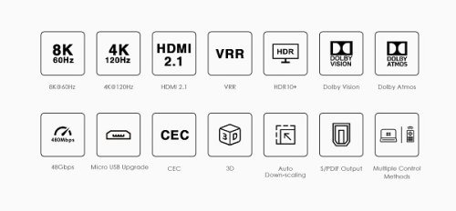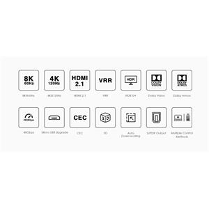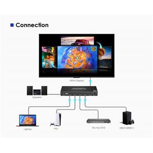 PremiumCord HDMI switch 4:1 s podporou rozlišení 8K@120Hz,4K@120Hz, 1080P, HDR10+, s ovládáním tlačítkem a dálkovým ovladačem
