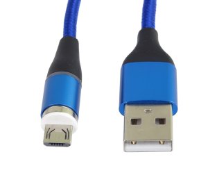 PremiumCord Magnetický micro USB a USB-C nabíjecí a datový kabel 1m, pro proud až 3A, modrý