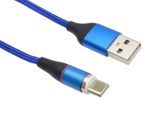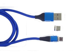PremiumCord Magnetický micro USB a USB-C nabíjecí a datový kabel 1m, pro proud až 3A, modrý - Kabel obsahuje dvě výměnné magnetické koncovky Micro USB a USB-C - Konektor micro USB nebo USB-C se zasune …