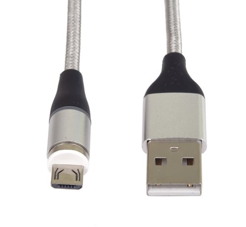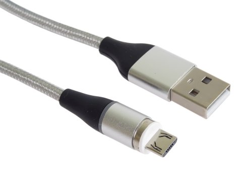 PremiumCord Magnetický micro USB a USB-C nabíjecí a datový kabel 1m, pro proud až 3A, stříbrný - Kabel obsahuje dvě výměnné magnetické koncovky Micro USB a USB-C - Konektor micro USB nebo USB-C se zasune …