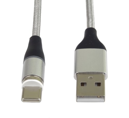 PremiumCord Magnetický micro USB a USB-C nabíjecí a datový kabel 1m, pro proud až 3A, stříbrný