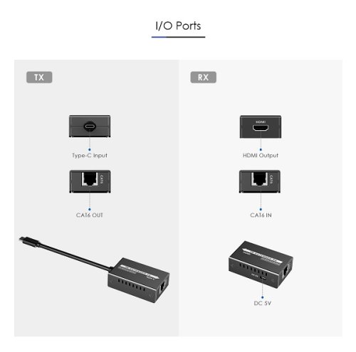Zařízení umožňuje po jednom síťovém kabelu bez zpoždění přenést audio a video signál o vysokém rozlišení a zobrazit na HDMI monitoru nebo projektoru na vzdálenost 60m.