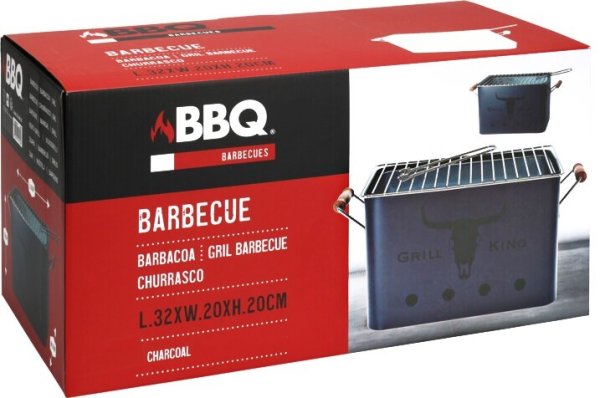 přenosný gril na dřevěné uhlí v modré barvě - perfektní jako cestovní gril, do kempu i na zahradu a na chatu - chromovaný grilovací rošt s rukojetí - postranní dřevěné rukojeti pro pohodlné přenášení - rozměry grilu: 32 x 20 x 20 cm - šířka i s rukojeťmi: 43 cm - model a barva: GRILL KING matná modrá - značka: PROGarden
