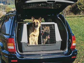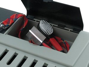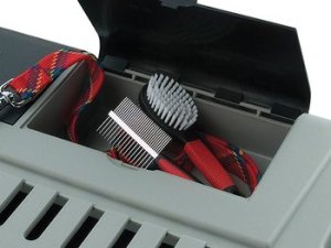 Obsahuje mřížku, kterou lze prostor rozdělit pro dva psy.