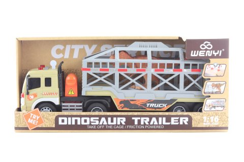 Přepravvník s dinosaurem. Po stisknutí tlačítek vydává zvuky a svítí. Rozměry cisterny cca 38,5 x 15 x 8 cm. Rozměry balení cca 42 xc 11,5 x 18,5 cm. Napájení na 3 AG13 baterie (jsou součástí balení). Věk 3+