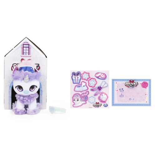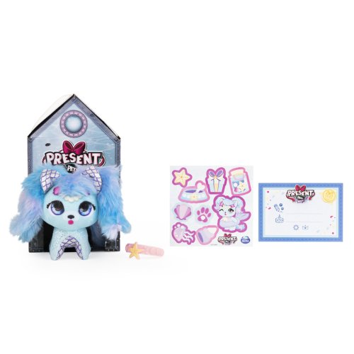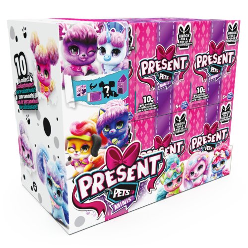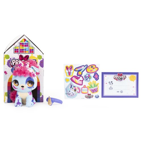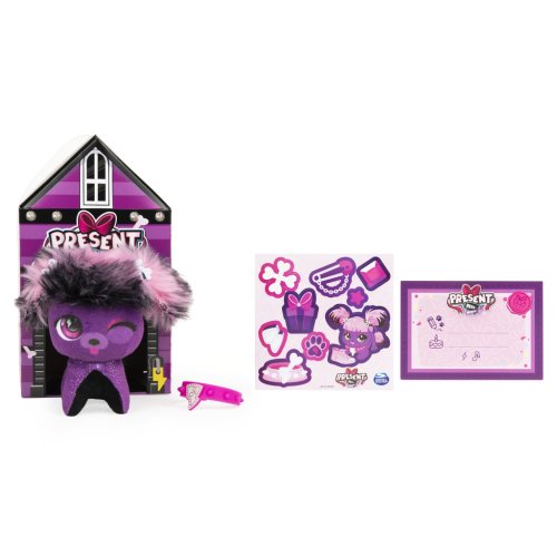 Zatáhni za visačku a proměň balení v útulný domeček ve kterém čeká roztomilý plyšák Present Pets Mini. Balení obsahuje 1 Present Pets Mini, 1 psí domeček, 1 certifikát osvojení, 1 samolepka, 1 obojek, Instrukce. Vhodné od 2 let.