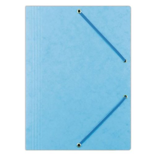 Prešpánové desky tříchlopňové Voskovaný papír 390 g/m2 Gumička v barvě desek Formát: A4 Rozměr: 235 x 319 mm Barva: světle modrá
