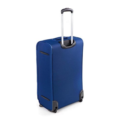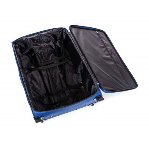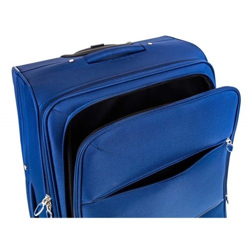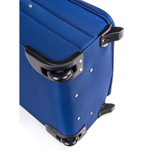 Cestovní textilní kufr 28'' v modré barvě, je vyrobený z textilie, což zaručuje nízkou hmotnost zavazadla. Je opatřený 2 kolečky pro snadné přemístění zavazadla. Kufr má 2 textilní madla (boční a horní) a 1 plastové s teleskopickou rukojetí s pojistkou proti zasunutí a možností nastavitelné výšky ve více polohách. Ve vnitřním prostoru naleznete jistící popruhy a vnitřní kapsu pro lepší fixaci a uspořádání vašich věcí. Dále má vnější kapsu pro umístění drobnějších věcí. Kufr se uzavírá na zip. Nosnost cestovního zavazadla je 23 kg.