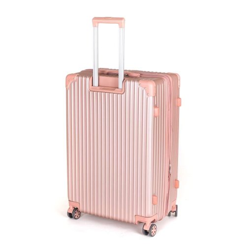Cestovní skořepinový kufr na kolečkách ABS25 se zpevněnými rohy, velikosti L ve zlatorůžové barvě, je vyrobený z kvalitního plastu ABS, který je odolný proti nárazu. Je opatřený 4 dvojitými kolečky otočnými o 360 st., díky tomu je manipulace s kufrem velice snadná. Kufr má 3 plastová madla: boční a dvě horní, z nichž je jedno s teleskopickou rukojetí s pojistkou proti zasunutí a možností nastavitelné výšky ve více polohách. Kufr se uzavírá na zip a oba jezdce můžete spojit do kódového zámku TSA, který velmi uvítáte při náhodných kontrolách na letišti. Vnitřní část kufru má látkovou dělící přepážku s kapsou a křížové upínání pro lepší fixaci a uspořádání vašich věcí. Kufr je vybaven expanderem, díky kterému je možné po rozepnutí 1 zipu kufr rozšířit do hloubky o několik cm a objemově tak zvětšit prostor až o pětinu. Nosnost cestovního zavazadla je 23 kg. Rozměry: 68 x 47 x 29 cm a výška kufru vč. koleček 75 cm. Objem: 86 l. Váha: 3,8 kg.