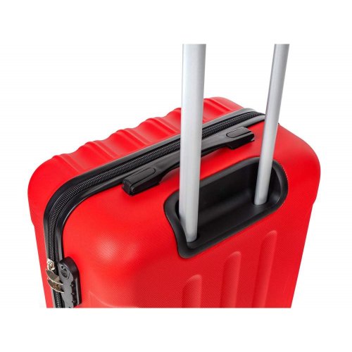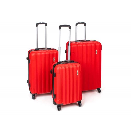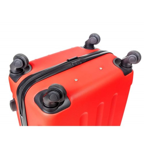 Cestovní skořepinový kufr na kolečkách ABS25 velikosti 24'' v červené barvě, je vyrobený z kvalitního plastu ABS, který je odolný proti nárazu. Je opatřený 4 kolečky otočnými o 360 st., díky tomu je manipulace s kufrem velice snadná. Kufr má 3 plastová madla: boční a dvě horní, z nichž je jedno s teleskopickou rukojetí s pojistkou proti zasunutí a možností nastavitelné výšky ve více polohách. Kufr se uzavírá na zip a oba jezdce můžete spojit do kódového zámku. Vnitřní část kufru má látkovou dělící přepážku s kapsou a křížové upínání pro lepší fixaci a uspořádání vašich věcí. Nosnost cestovního zavazadla je 18 kg. Rozměry: 59 x 41 x 26 cm a výška kufru vč. koleček 65 cm. Objem: 58 l. Váha: 3,18 kg.