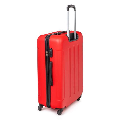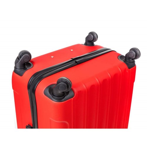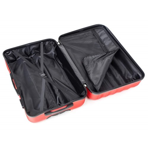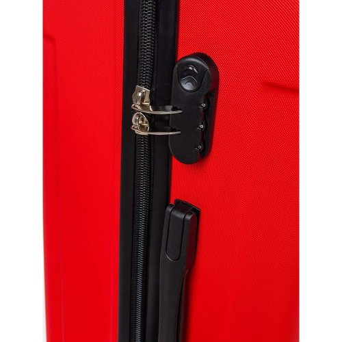 Cestovní skořepinový kufr na kolečkách ABS25 velikosti velikosti 28'' v červené barvě, je vyrobený z kvalitního plastu ABS, který je odolný proti nárazu. Je opatřený 4 kolečky otočnými o 360 st., díky tomu je manipulace s kufrem velice snadná. Kufr má 3 plastová madla: boční a dvě horní, z nichž je jedno s teleskopickou rukojetí s pojistkou proti zasunutí a možností nastavitelné výšky ve více polohách. Kufr se uzavírá na zip a oba jezdce můžete spojit do kódového zámku. Vnitřní část kufru má látkovou dělící přepážku s kapsou a křížové upínání pro lepší fixaci a uspořádání vašich věcí. Nosnost cestovních zavazadel je 23 kg. Rozměry: 68 x 47 x 29 cm a výška kufru vč. koleček 75 cm. Objem: 86 l. Váha: 3,8 kg.